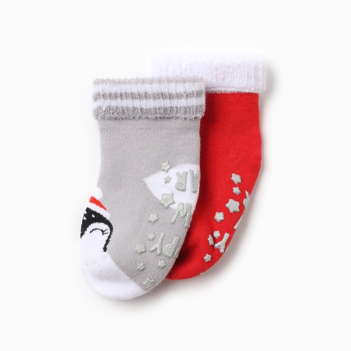 Новый год. Набор махровых носков Крошка Я "Пингвин и Олененок", 2 пары, размер 10-12 см