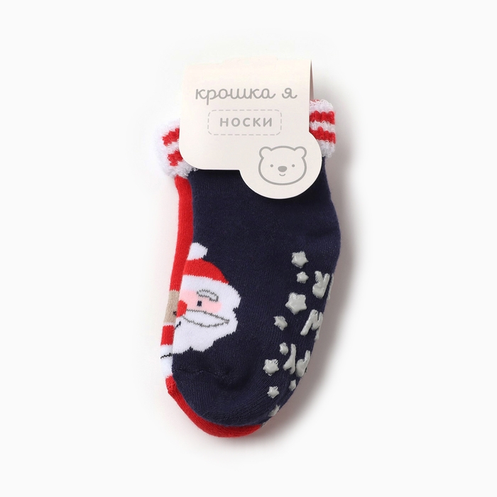Новый год. Набор махровых носков Крошка Я "Новогодние мордашки", 2 пары, размер 8-10 см