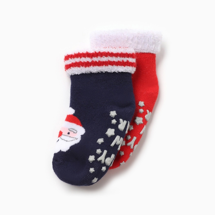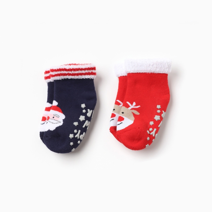 Новый год. Набор махровых носков Крошка Я "Новогодние мордашки", 2 пары, размер 12-14 см