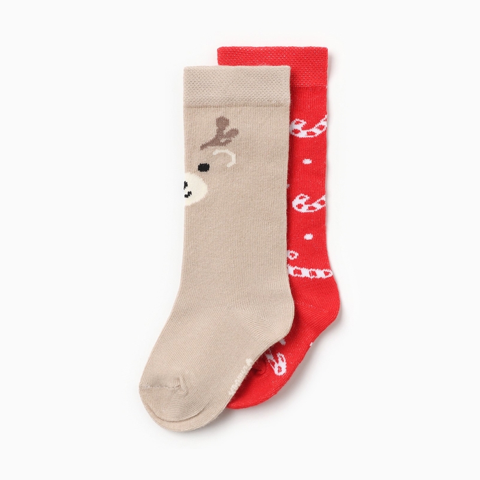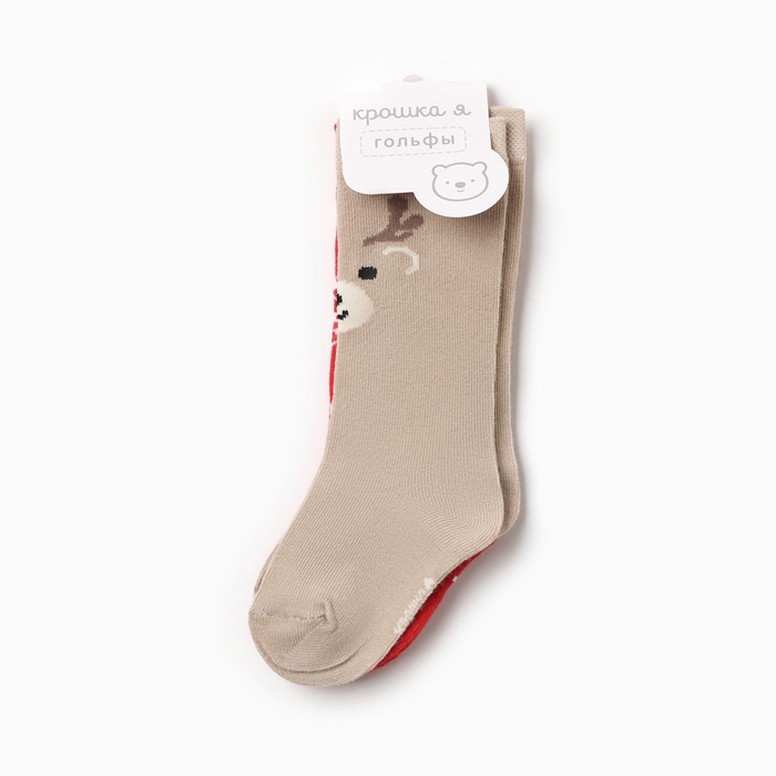 Новый год.Гольфы детские 2 пары Крошка Я, 10-12 см, бежевый / красный