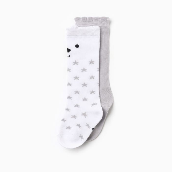 Новый год.Гольфы детские 2 пары Крошка Я, 14-16 см, белый / серый