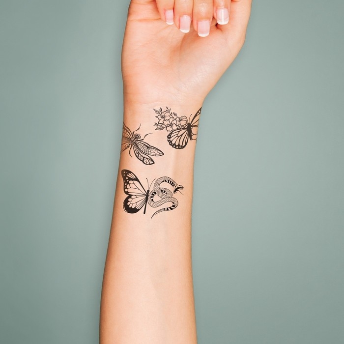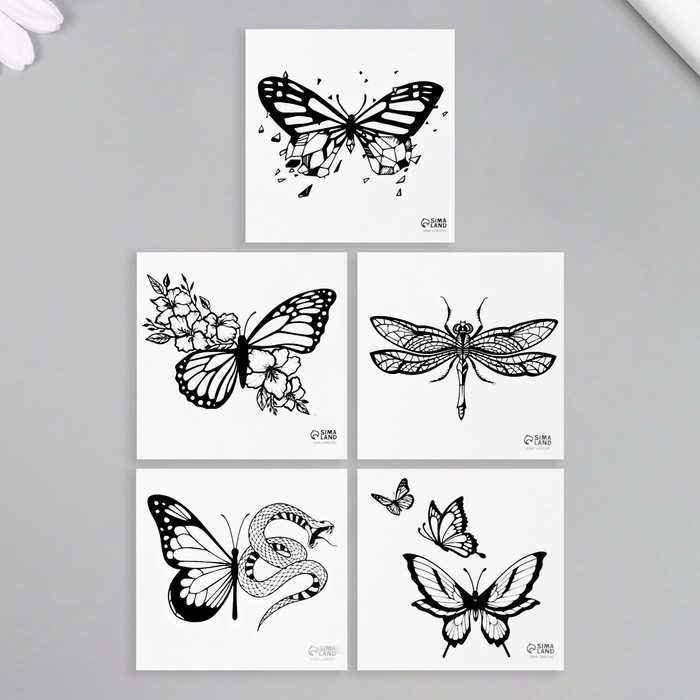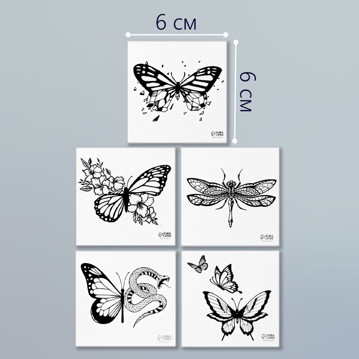 Татуировка на тело чёрная "Бабочки" набор 5 шт 6х6 см