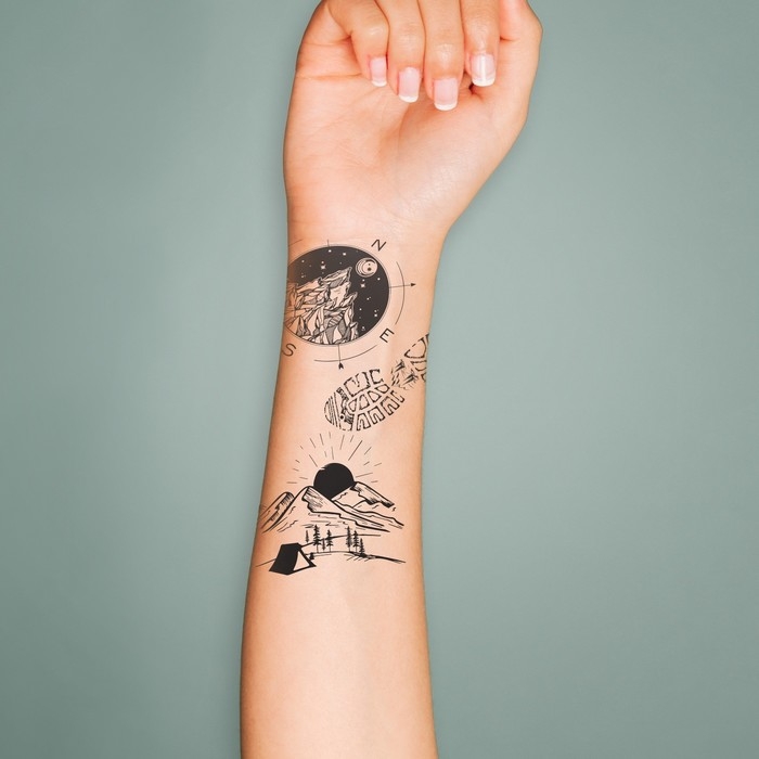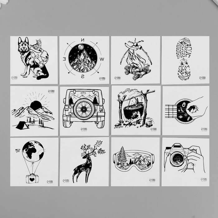 Татуировка на тело чёрная "Путешествие" набор 12 шт 6х6 см