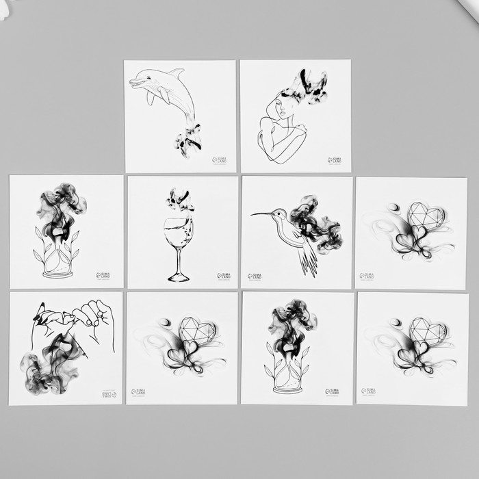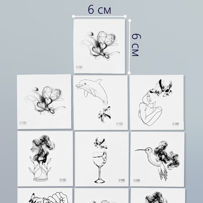 Татуировка на тело чёрная "Чёрнильные" набор 10 шт 6х6 см
