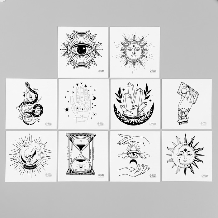 Татуировка на тело чёрная "Эзотерика" набор 10 шт 6х6 см