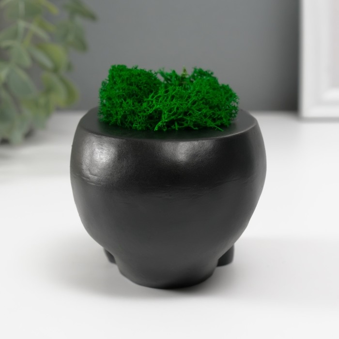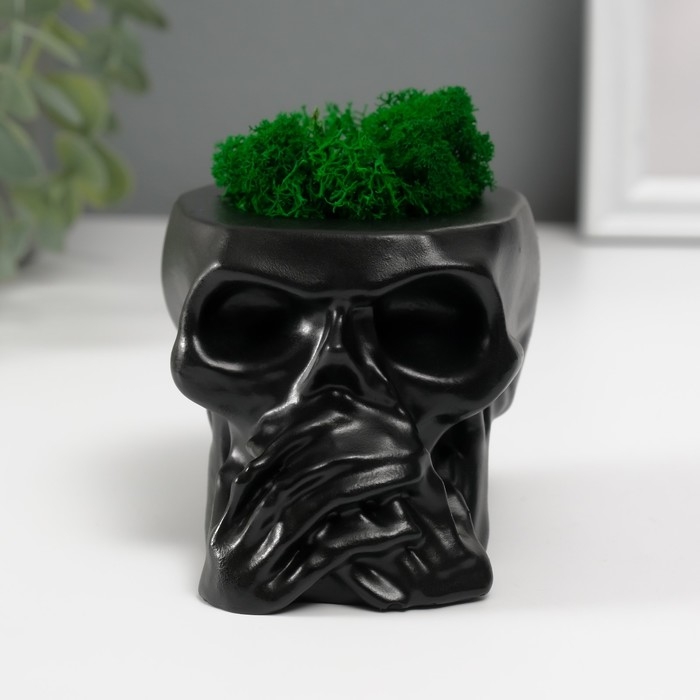 Кашпо бетонное "Череп Безмолвие" со мхом 6,5х10 см черный (мох зеленый стабилизированный)