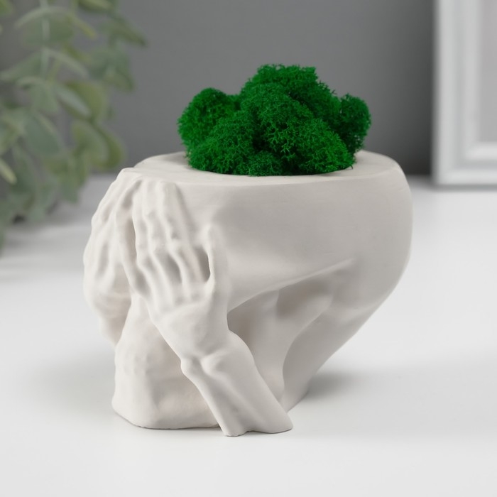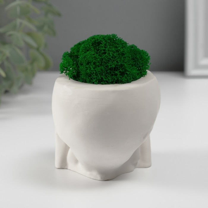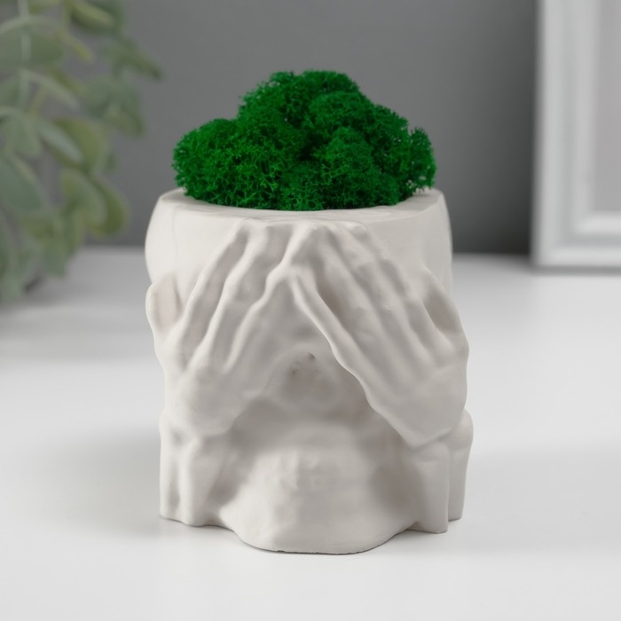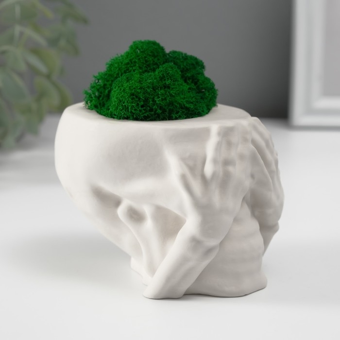 Кашпо бетонное "Череп Прятки" со мхом 7х10 см белый (мох зеленый стабилизированный)