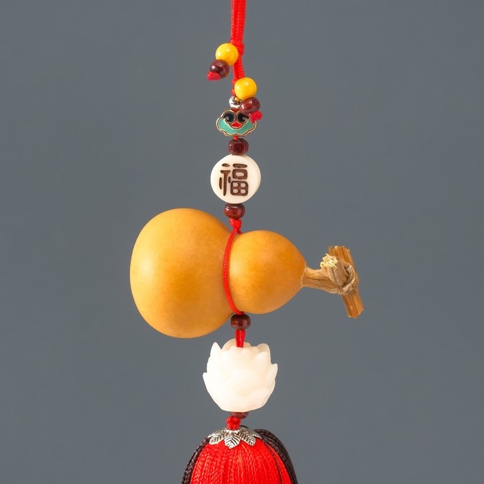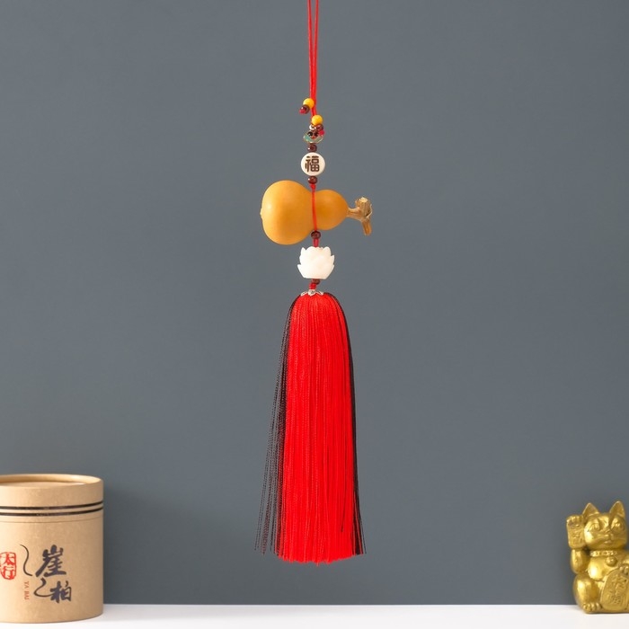 Подвеска дерево, текстиль "Тыква горлянка и лотос" красно-коричневый 6х28 см