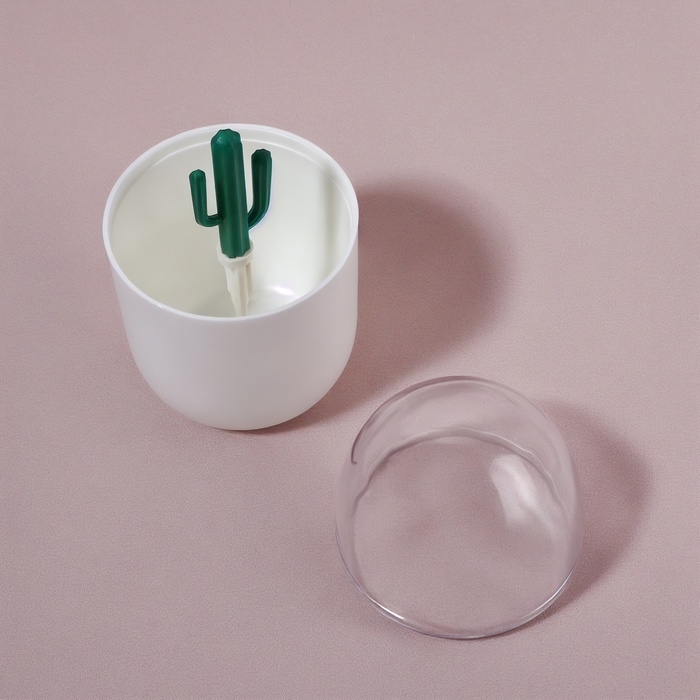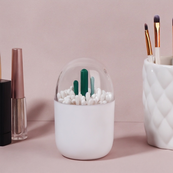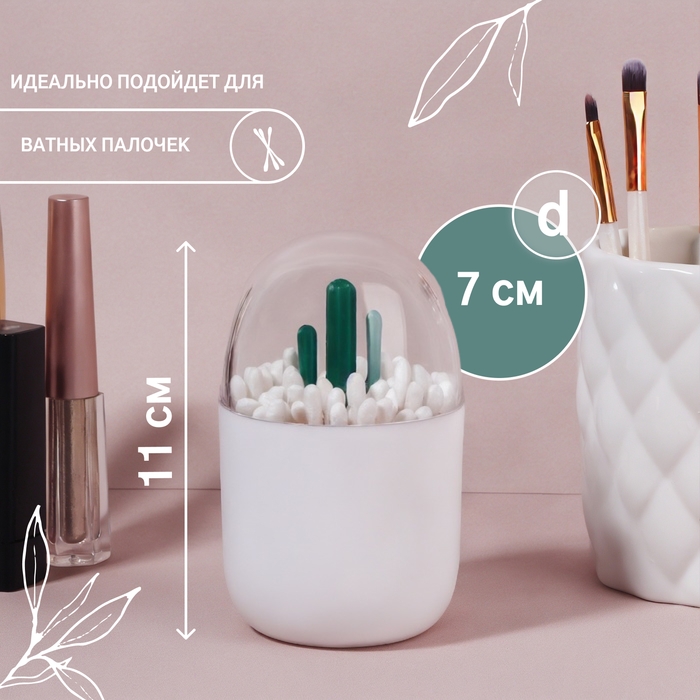 Органайзер для ватных палочек «КАКТУС», с крышкой, d = 7 × 11 см, цвет белый/прозрачный