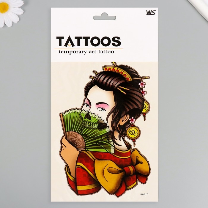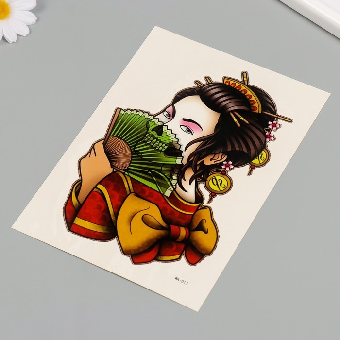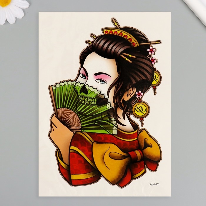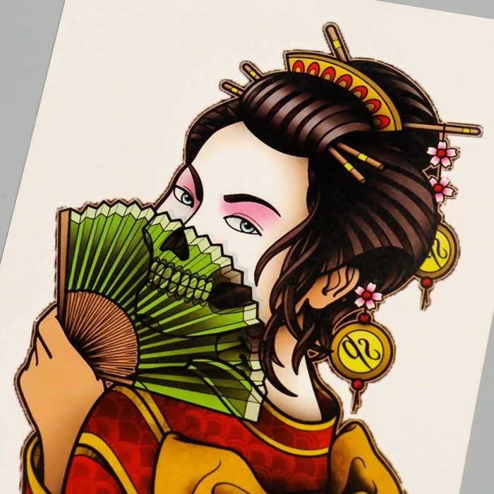 Татуировка на тело цветная "Гейша вечная" 26,1х14,6 см