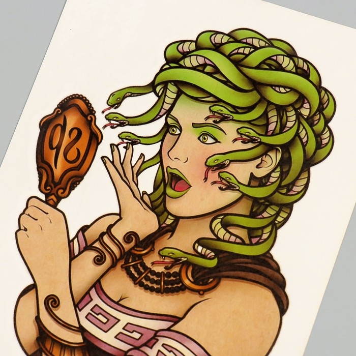Татуировка на тело цветная "Медуза Горгона" 26,1х14,6 см