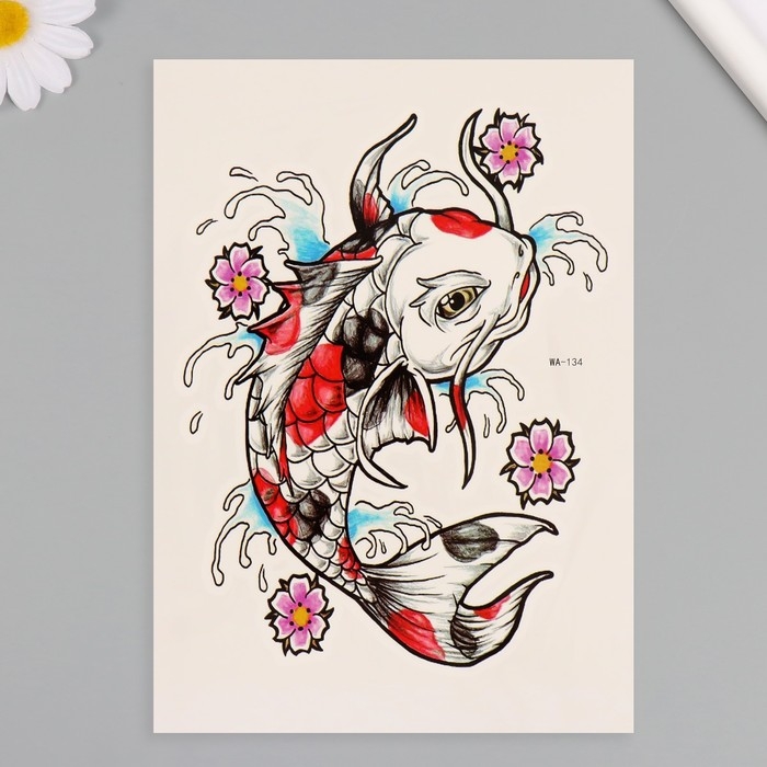Татуировка на тело цветная "Карп" 26,1х14,6 см