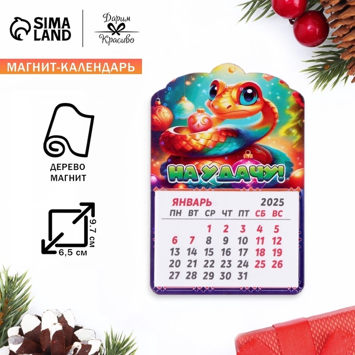 Магнит новогодний календарь "Символ года 2025.На удачу!", 12 месяцев