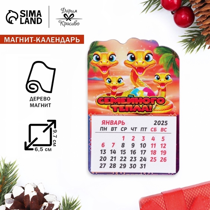 Магнит новогодний календарь "Символ года 2025.Семейного тепла!", 12 месяцев