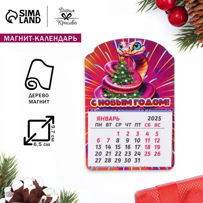Магнит новогодний календарь "Символ года 2025.С новым годом", 12 месяцев
