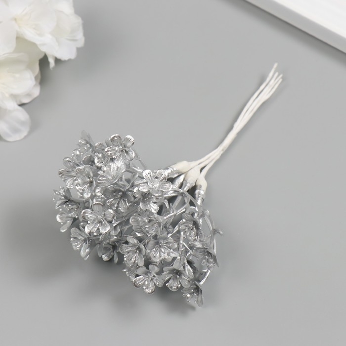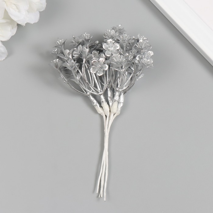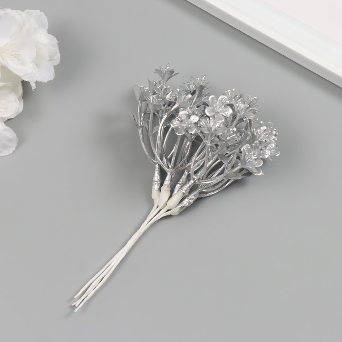 Искусственное растение для творчества "Незабудки" 1 букет = 6 веточек серебро 13,5 см