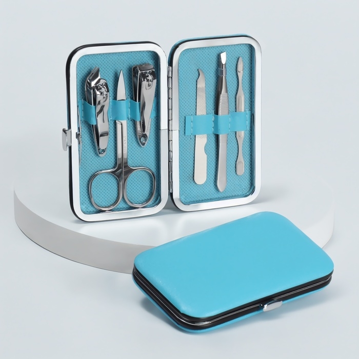 Набор маникюрный «Нежность», 6 предметов, в футляре, цвет голубой