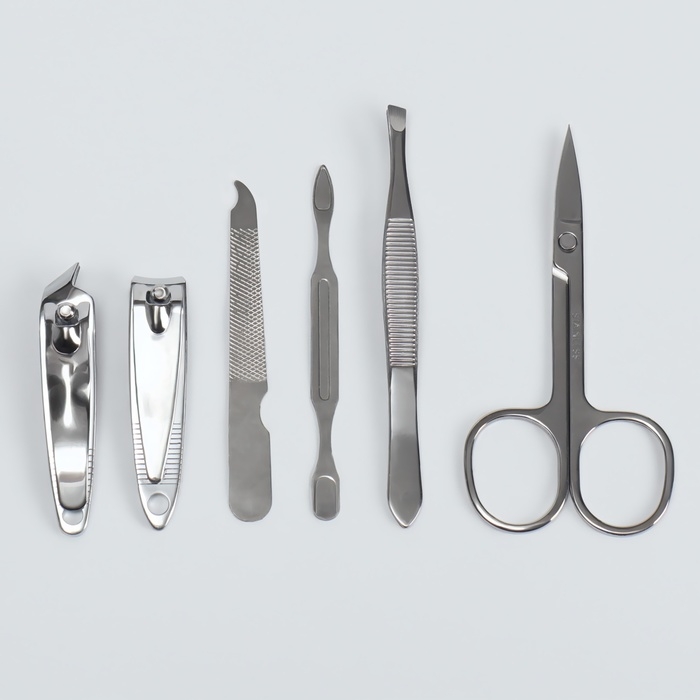 Набор маникюрный, 6 предметов, в футляре, цвет чёрный