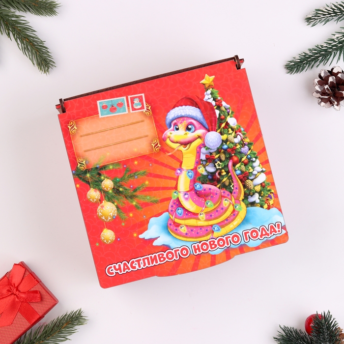 Коробка подарочная "Символ года 2025.Счастливого нового года" 18,5х18х10 см