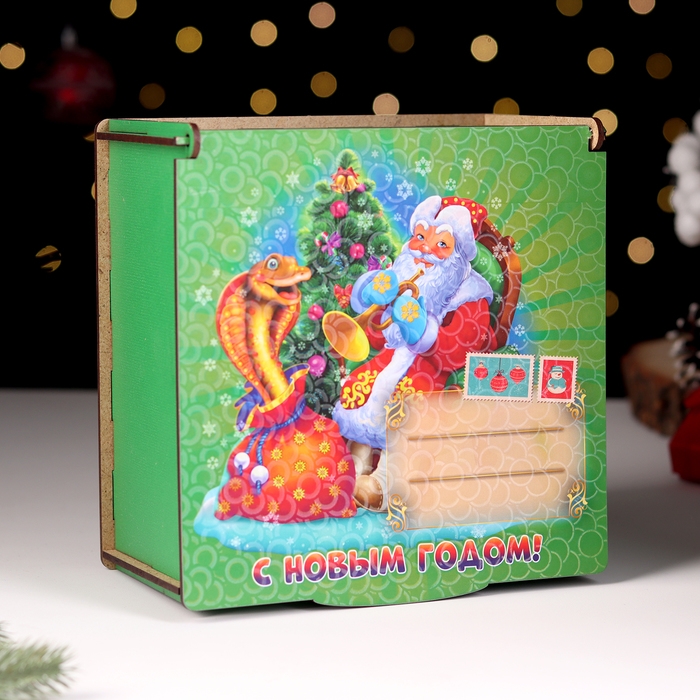 Коробка подарочная "Символ года 2025.С новым годом" 18,5х18х10 см,зеленая