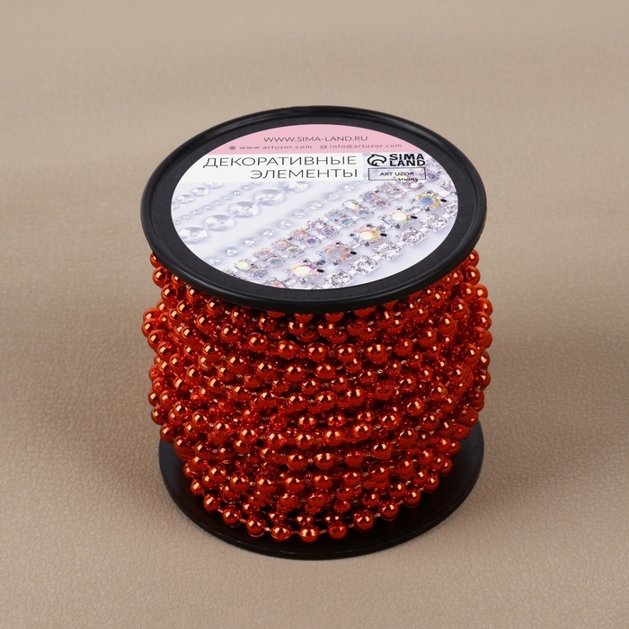 Бусы на нитях, круглые, 4 мм, 9 ± 1 м, цвет красный