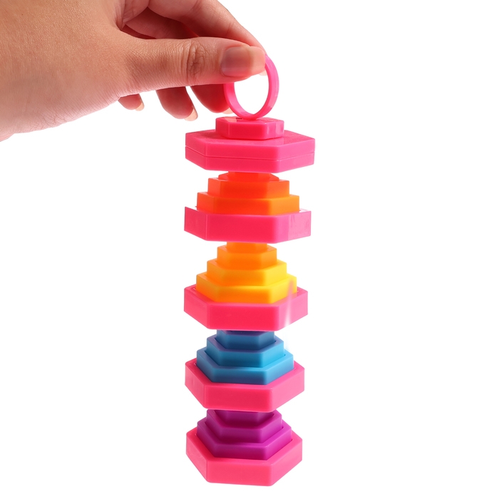 - Пирамидка сделана из безопасных материалов, что гарантирует долгую и безопасную игру