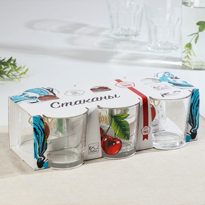 Набор стеклянных стаканов «Ода. Полезная вишня», 250 мл, 6 шт