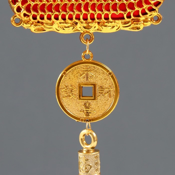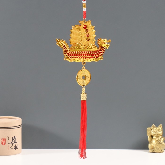 Подвеска пластик, текстиль "Лодка Дракон с китайской монетой" 1,8х13х39 см