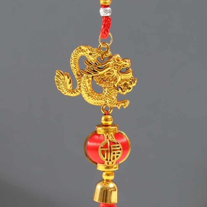 Подвеска пластик, текстиль "Золотой дракон и китайский фонарик" 3х5,7х37 см