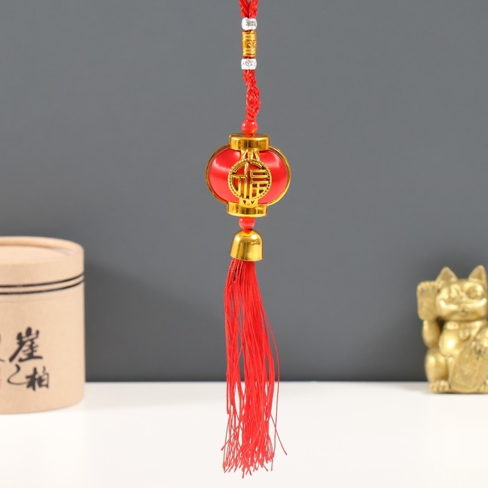 Подвеска пластик, текстиль "Китайский фонарик с колокольчиком" 4х4х18 см