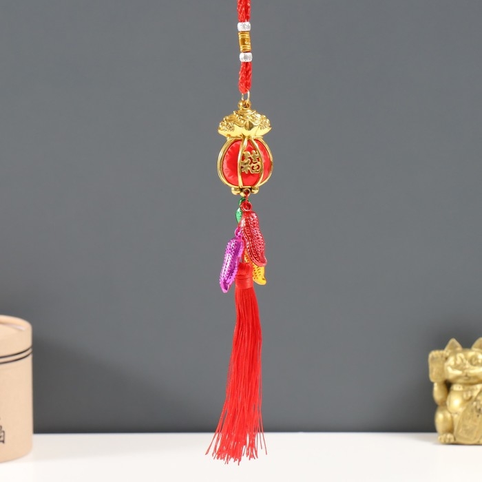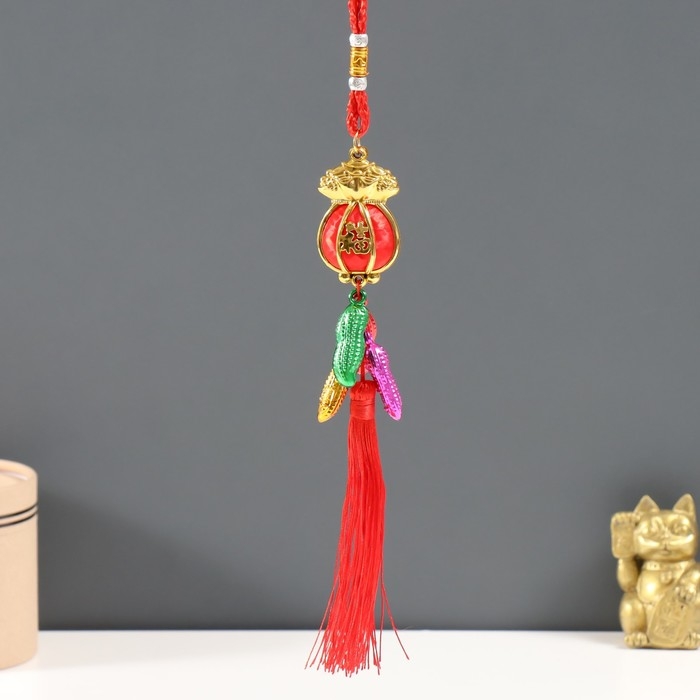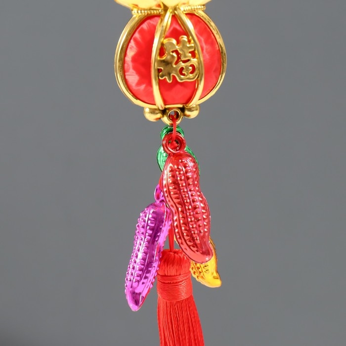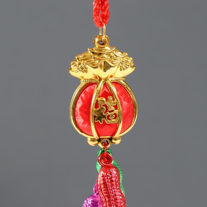 Подвеска пластик, текстиль "Красный денежный мешок с арахисом" 2,5х3,5х32 см