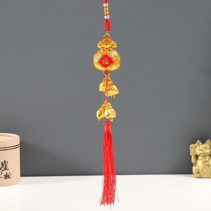 Подвеска пластик, текстиль "Золотые денежные мешки" 3х4,5х38 см