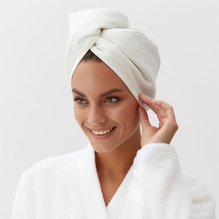 Полотенце-чалма для сушки волос Этель, цв. белый, 73х28 см, 60% лён, 40% хл
