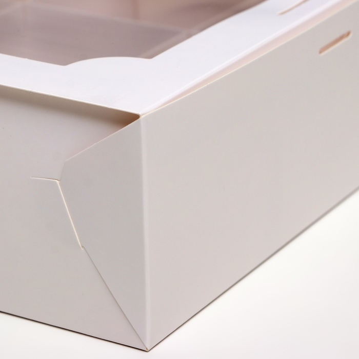 Коробка на 6 капкейков с окном, белая, 25 х 17 х 10 см