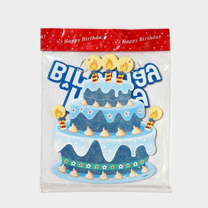Декоративное украшение (подвеска) "Happy Birthday" 42х26 см, цв. голубой