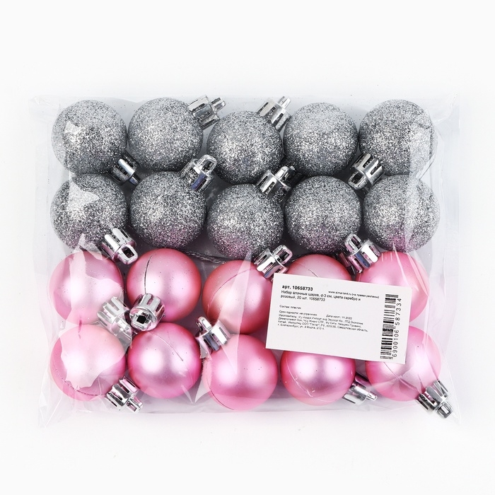 Новогодние шары ёлочные, на Новый год, d=3 см, 20 шт., цвет серебристый и розовый