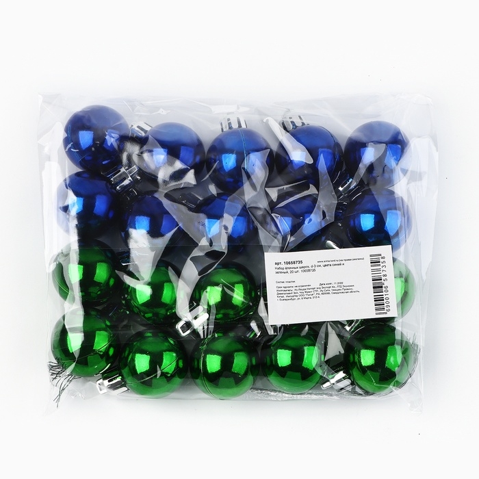 Новогодние шары ёлочные, на Новый год, d=3 см, 20 шт., цвет синий и зеленый