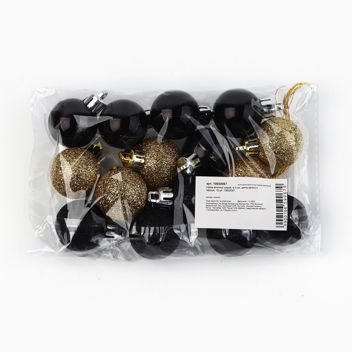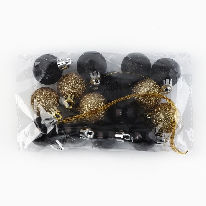 Новогодние шары ёлочные, на Новый год, d=3 см, 15 шт., цвет золотой и чёрный