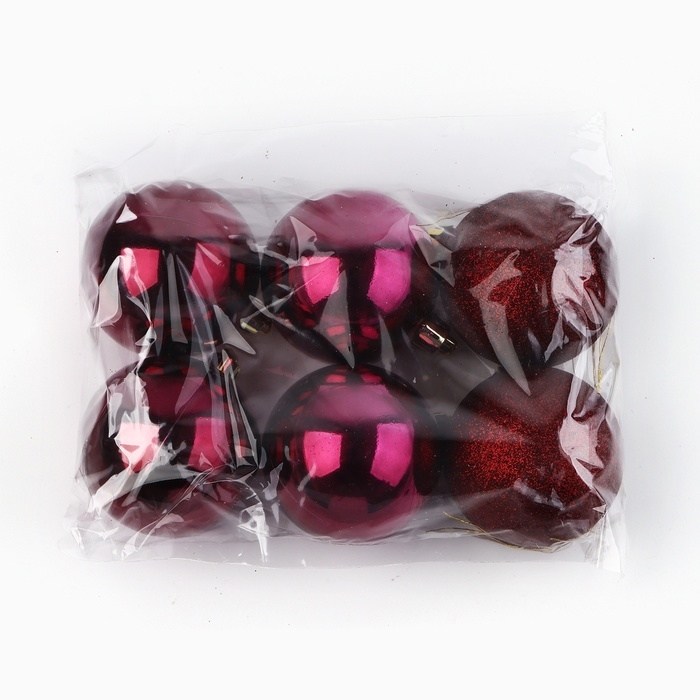 Новогодние шары ёлочные, на Новый год, d=6 см., 6 шт., цвет винный