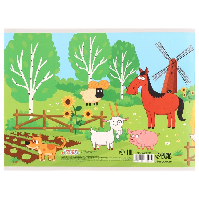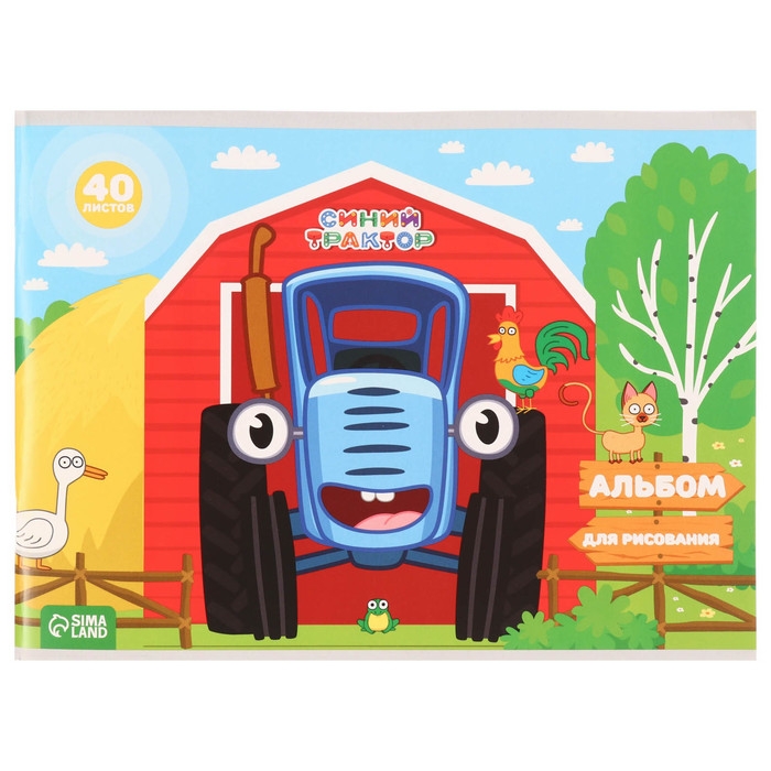 Альбом для рисования на скрепке, А4, 40 листов, Синий трактор