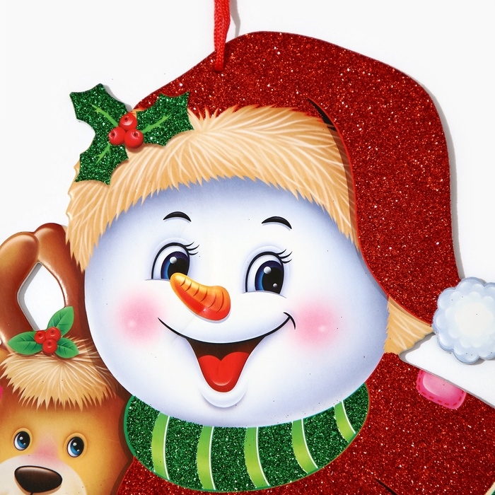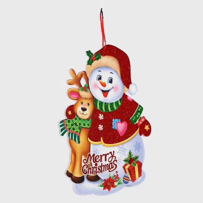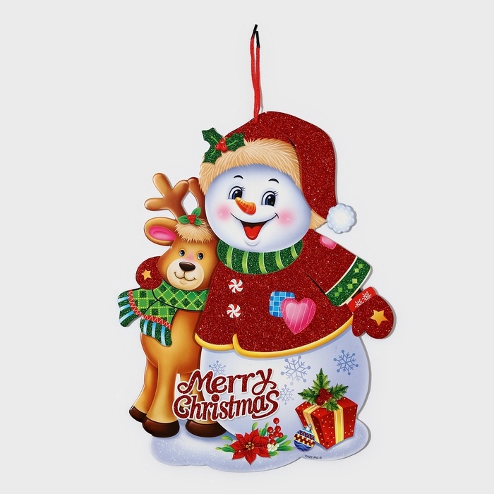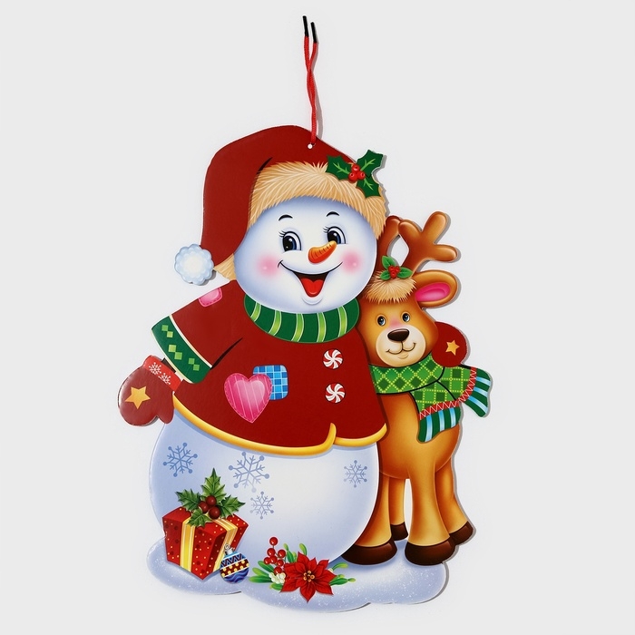 Декоративное украшение (подвеска) "Снеговик и Олень" 44х33,5 см
