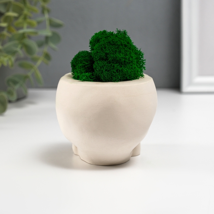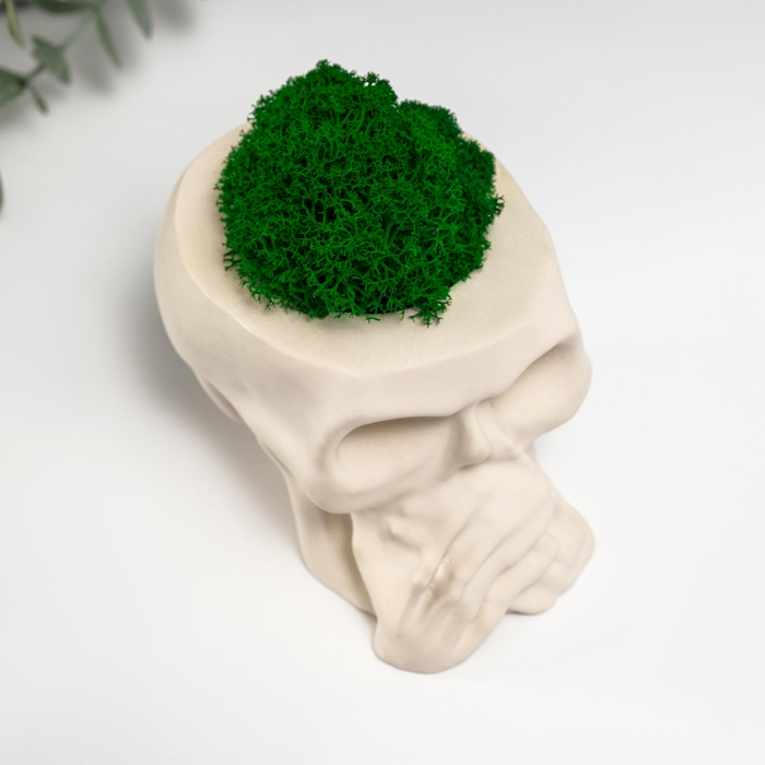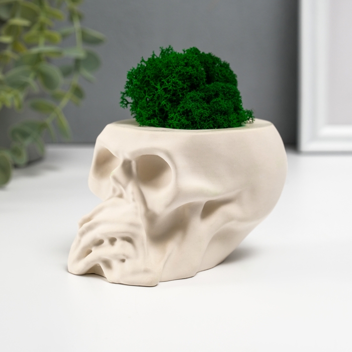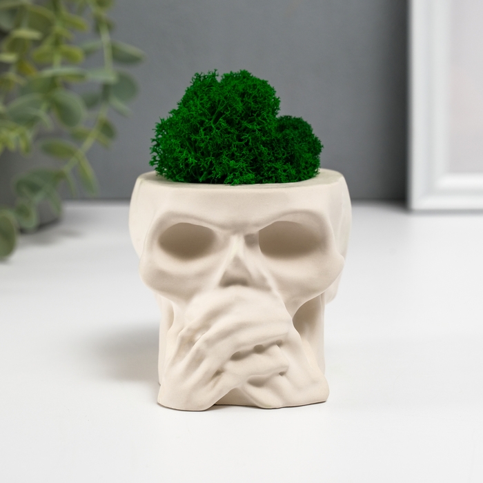 Кашпо бетонное "Череп Безмолвие" со мхом 6,5х10 см белый (мох зеленый стабилизированный)