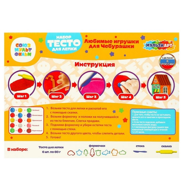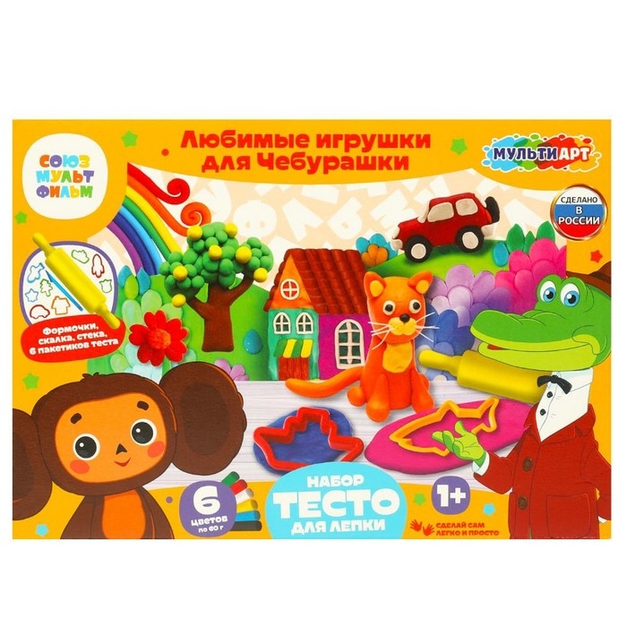 Тесто для лепки «Чебурашка. Любимые игрушки для чебурашки», 6 цветов