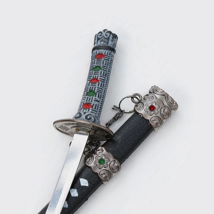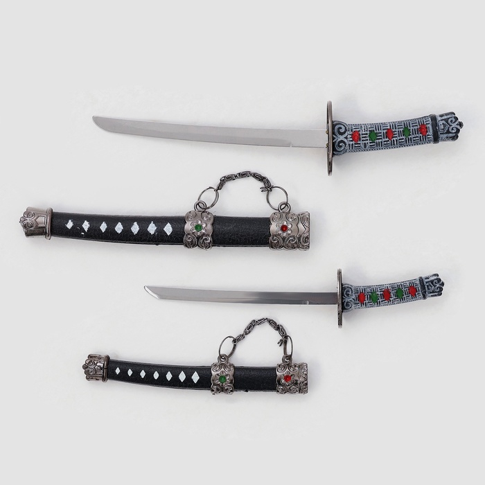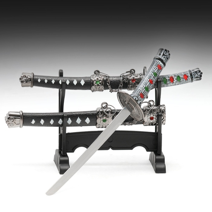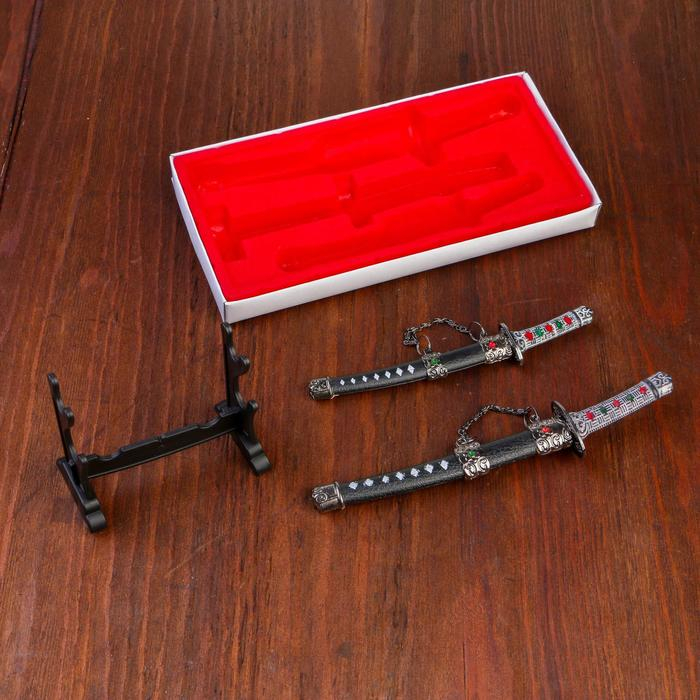Сув. изделие катаны-мини 2в1 на подставке, ножны черные с белыми ромбами 16/20см микс