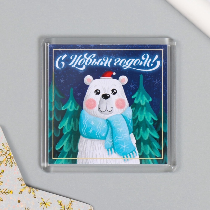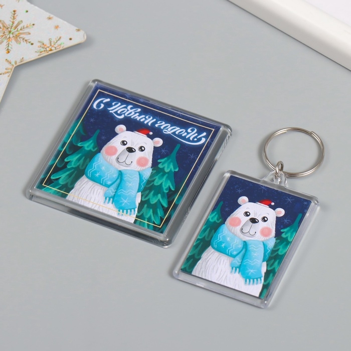 Новогодний набор "Мишка" (Новогодний брелок 3,5х5 см, Новогодний магнит 5,7х5,7 см)