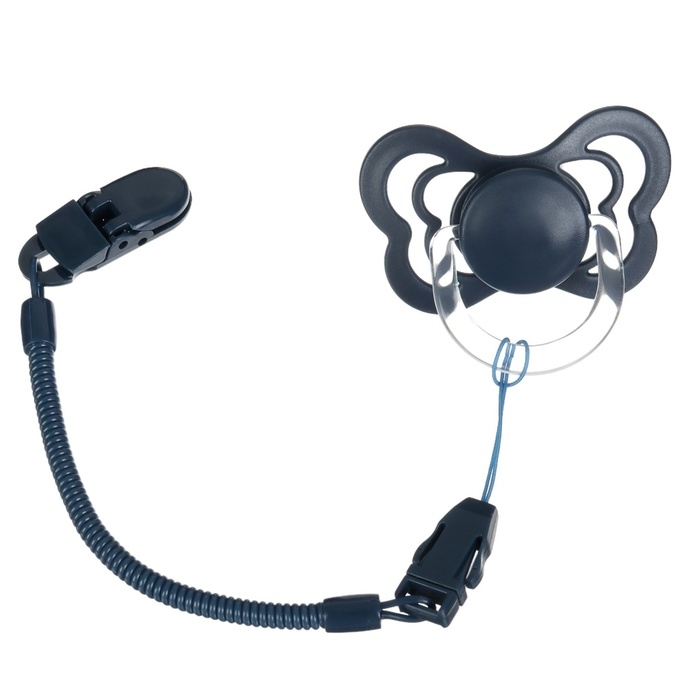 Соска - пустышка ортодонтическая, силикон, +6 мес., с держателем цвет синий