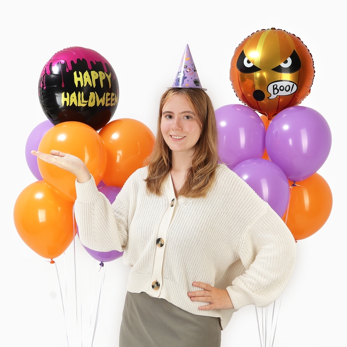 Праздничный набор «Хэллоуин» — это впечатляющий комплект, состоящий из 20 элементов, который поможет вам легко создать атмосферу праздника для вашей вечеринки. В набор входят 14 латексных шаров различных размеров и 6 бумажных колпаков с тематическим дизайном на тему ужастиков. Шары можно надуть как гелием, так и обычным воздухом.