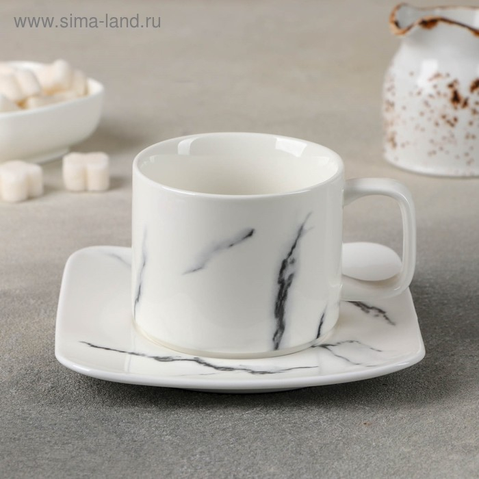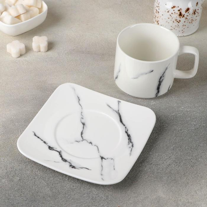 Чайная пара керамическая «Мрамор», 2 предмета: чашка 220 мл, блюдце d=14 см, цвет белый