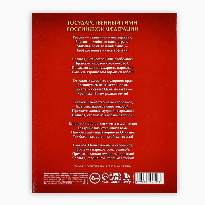 Дневник российского школьника для 5-11 классов, твердая обложка 7БЦ, глянцевая ламинация, 48 листов