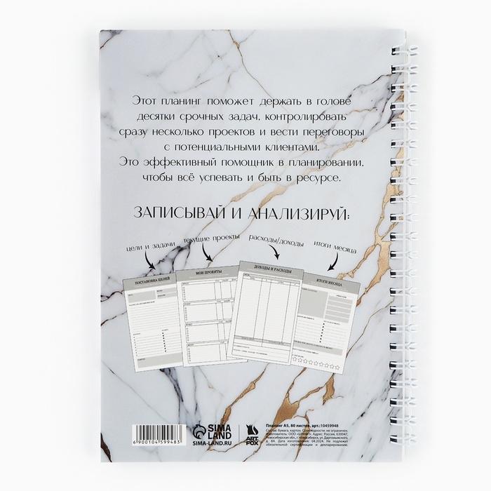 Планинг фрилансера «Создавай себя» мрамор А5, 80 л.